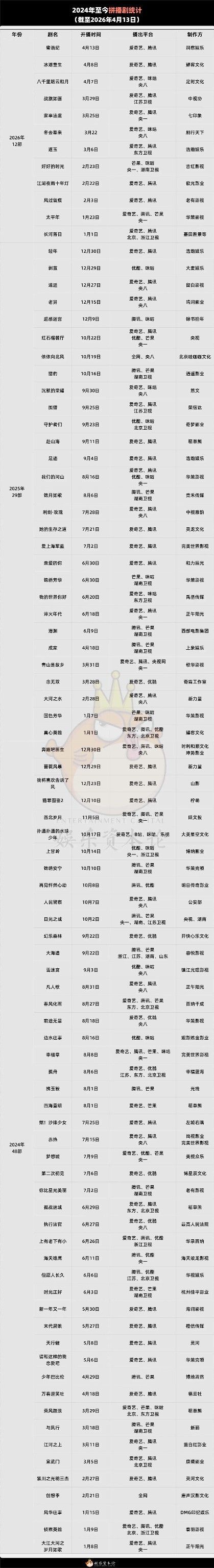 小娱整理了2024年至今的大部分拼播剧信息。从数据来看, 2024年有48部拼播剧,是近三年最高;2025年回落至29部;2026年仅三个半月,就已经出现了12部拼播项目。