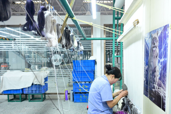 “在品牌创始与发展过程中,我们一直将藏毯作为企业发展的文化根脉,在此基础上发展出手工编织、手工枪刺、机织三大工艺并行的生产体系,适应市场的同时,也守护住了藏毯传统技艺。”圣源地毯副总经理杜非说,2007年建厂时,车间里仅有十几台织机。如今,企业已发展为占地300余亩的集团,近百台织机在车间里运转不息,自动化染纱生产线与研发检测中心有序作业。